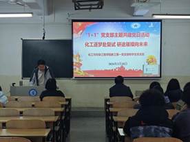 为助力考研学子冲刺复试、圆梦理想院校,3月18日,化工与印染工程学院教工第一党支部与学生党支部在教实219教室联合开展“1+1”党支部共建主题党日活动,切实为考研学子复试备考提供精准支持与专业指导,助力同学们走好考研“最后一公里”。